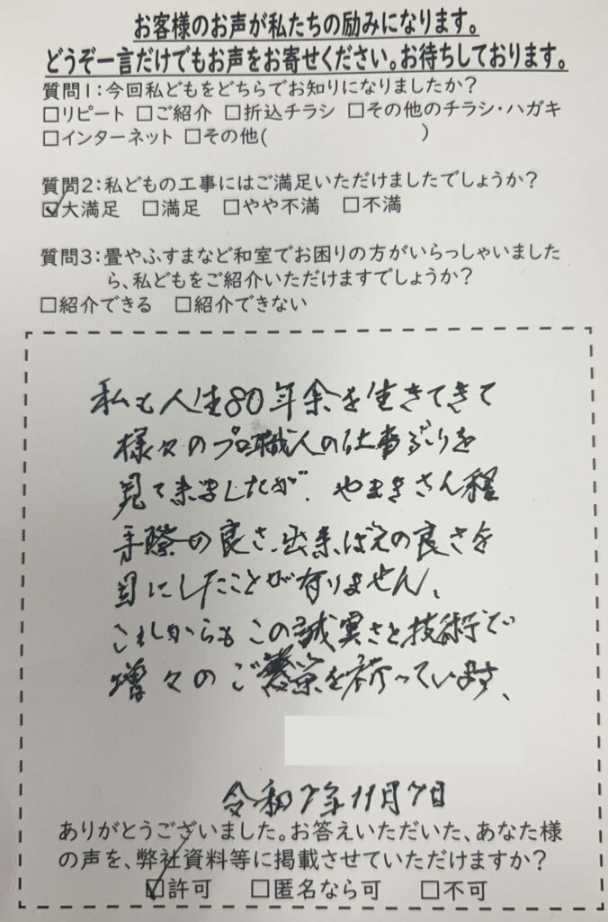 【北区志茂 O様 八巻さん程の手際の良さ、出来ばえの良さを目にしたことが有りません】